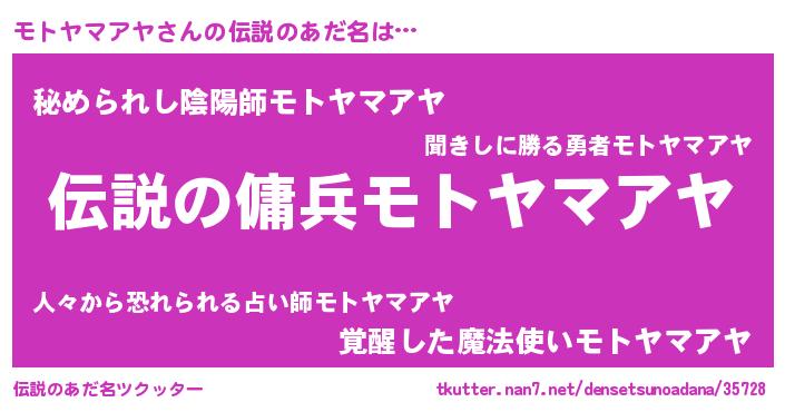 | 女子向けラノベタイトル風あだ名 | 『モトヤマアヤなんてお断りですっ。』 |
