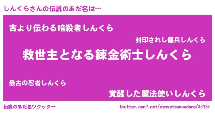 | ヒーロー風カッコイイあだ名 | 『慈愛の使者しんくら』『ネオシンクラ』 |