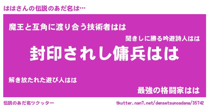 | 胡散臭い通販商品みたいなあだ名 | 『あなたにだけ特別に提供する限定10本のレアな日本酒…その名も「はは」』 |