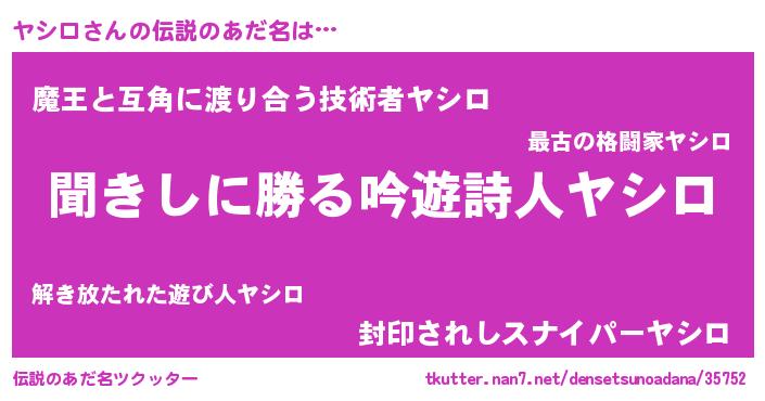 | ヒーロー風カッコイイあだ名 | 『ウルトラ戦士ヤシロ』『ネオヤシロ』 |