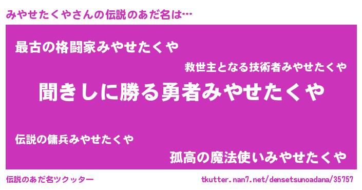 | 意味不明あだ名 | 『永久保存みやせたくや』 |