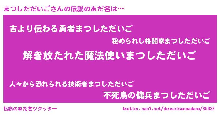 | 胡散臭い通販商品みたいなあだ名 | 『伝統あるサプリメント…その名も「まつしただいご」』 |
