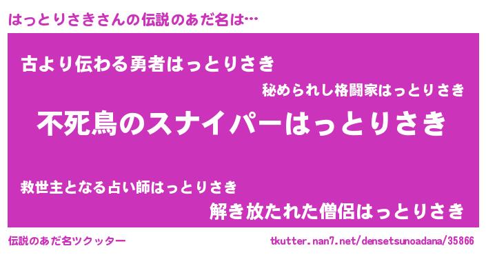 | ヘコむあだ名 | 『はっっふぃ~』『はっとりさき(震え声)』 |