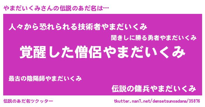 | ヒーロー風カッコイイあだ名 | 『仮面ヤマダー』『銀牙騎士ヤマ』 |
