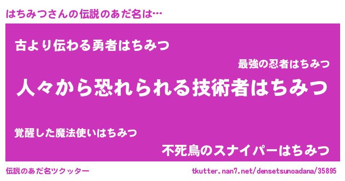 | 意味不明あだ名 | 『住所不定無職はちみつ(13歳)』 |