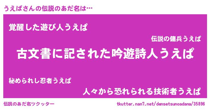 | ポケモン風あだ名 | 『ゼニウエ』『ヒウエパ』『ウーエイ』 |