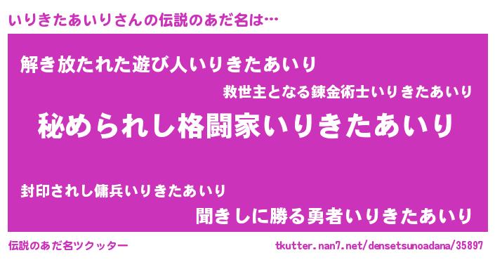| 意味不明あだ名 | 『いりきたあいりフォーエバー』 |