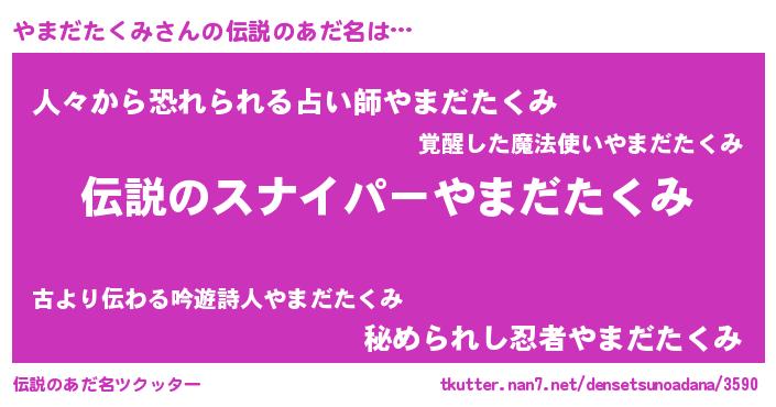 | 意味不明あだ名 | 『住所不定無職やまだたくみ(91歳)』 |