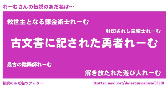 | 意味不明あだ名 | 『永久保存れーむ』『しいたけ科れーむ属』 |