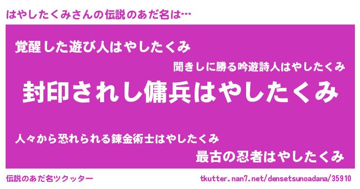 | 意味不明あだ名 | 『自称はやしたくみ』 |