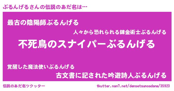 | 意味不明あだ名 | 『住所不定無職ぶるんげる(89歳)』 |
