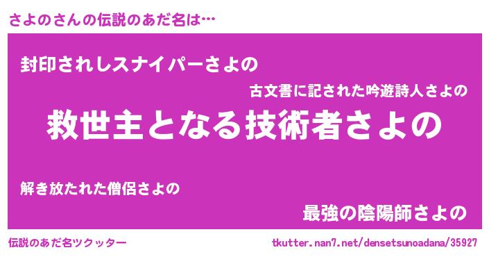 | 女子向けラノベタイトル風あだ名 | 『死神さよのの再婚』『闇のさよの』 |