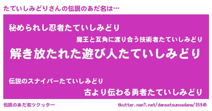 | 意味不明あだ名 | 『とにかく怪しいたていしみどり』 |