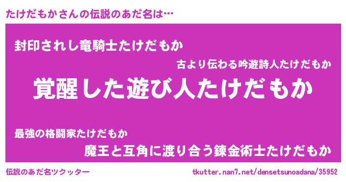 | 意味不明あだ名 | 『住所不定無職たけだもか(89歳)』 |
