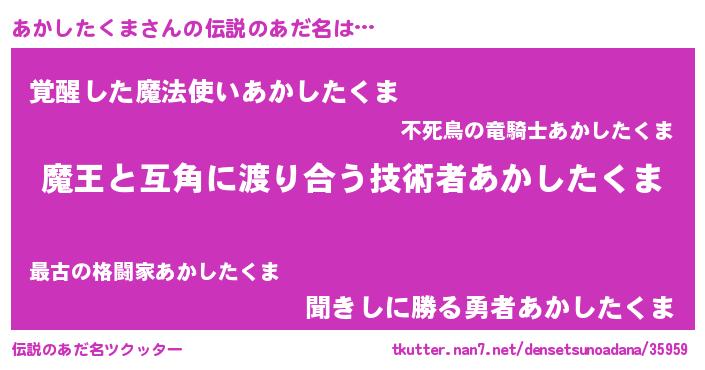 | ヒーロー風カッコイイあだ名 | 『愛の使者あかしたくま』『天弓騎士アカ』 |