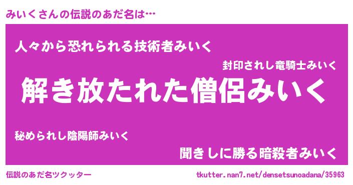 | 意味不明あだ名 | 『とにかく怪しいみいく』『自称みいく』 |