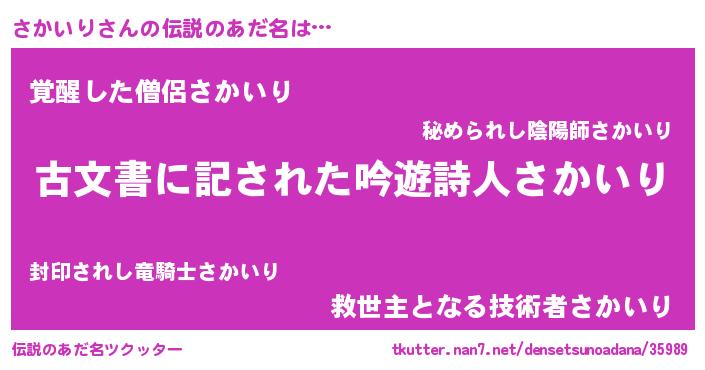 | 意味不明あだ名 | 『永久保存さかいり』『自称さかいり』 |