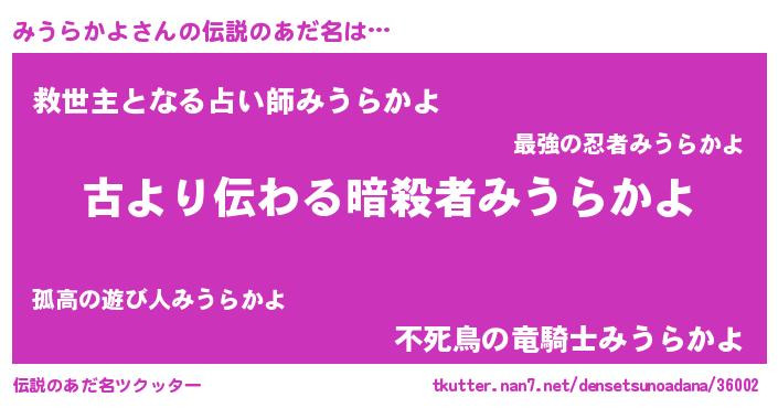 | ヒーロー風カッコイイあだ名 | 『ネオミウラカヨ』『愛の使者みうらかよ』 |