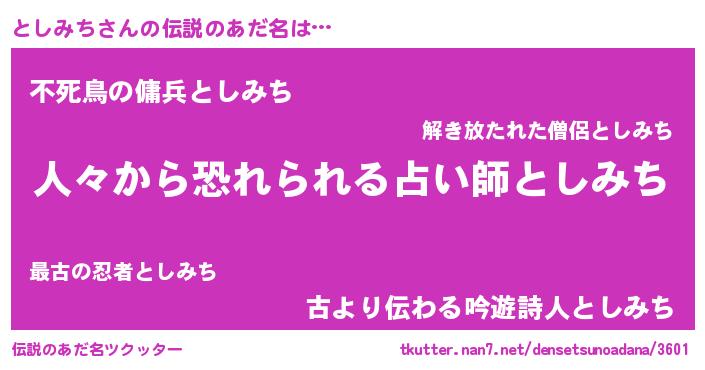 | 胡散臭い通販商品みたいなあだ名 | 『100人中100人が認めたイリジウム磁石…その名も「としみち」』 |