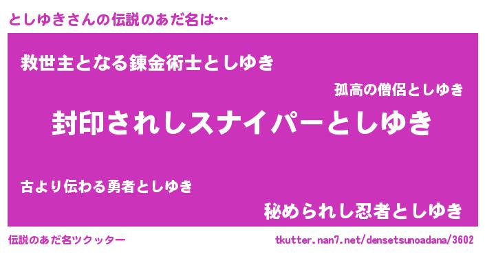 | ファンタジー風あだ名 | 『トシフェル』『クイントット』 |
