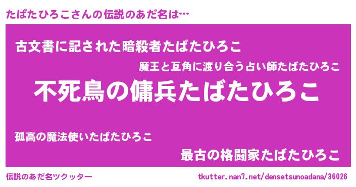 | ヒーロー風カッコイイあだ名 | 『スーパータバタヒロコ』『仮面タバダー』 |