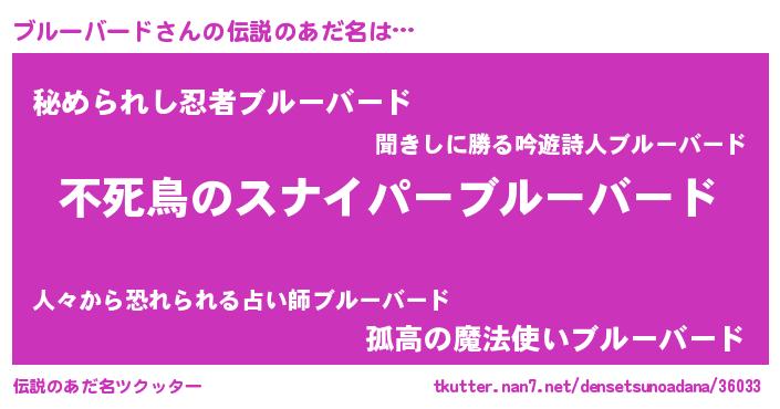 | 胡散臭い通販商品みたいなあだ名 | 『モテモテ間違いなし霊験あらたかなお札…その名も「ブルーバード」』 |