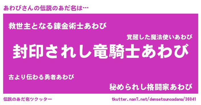 | ファンタジー風あだ名 | 『アワフェル』『ユリアワヴァット』 |