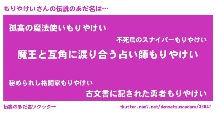 | ヒーロー風カッコイイあだ名 | 『仮面モリダー』『友情の使者もりやけい』 |