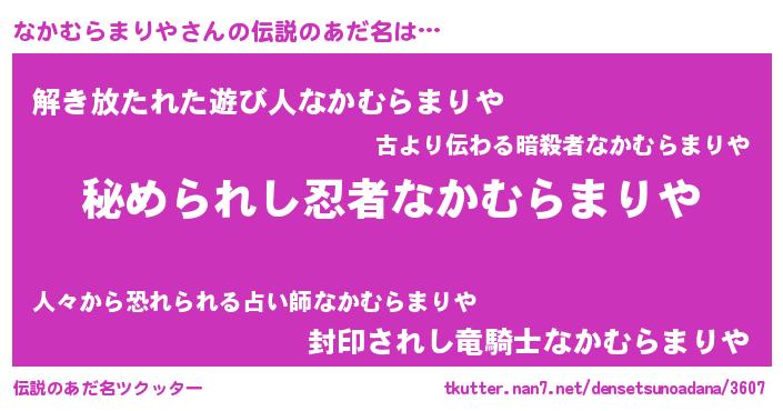 | 女子向けラノベタイトル風あだ名 | 『なかむらまりやなんてお断りですっ。』 |