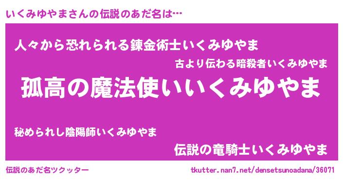 | 欧米人風あだ名 | 『ウサインいくみゆやま』 |