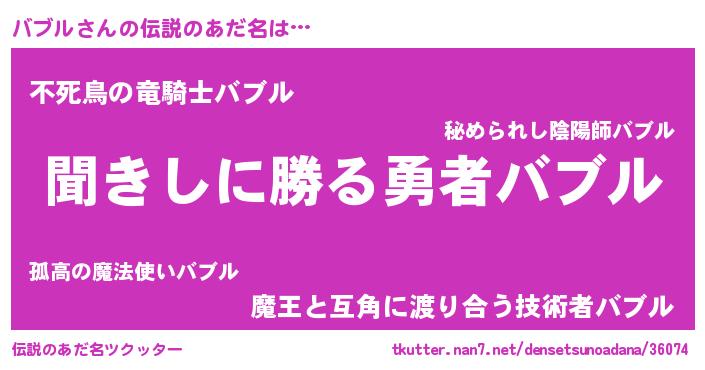 | ヒーロー風カッコイイあだ名 | 『ネオバブル』『スーパーバブル』 |