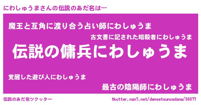 | ヒーロー風カッコイイあだ名 | 『スーパーニワシュウマ』『炎刃騎士ニワ』 |