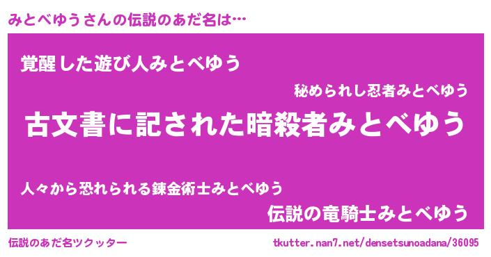 | ヘコむあだ名 | 『みとべゆう(笑)』『みとっちょ』 |