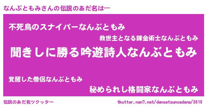 | 意味不明あだ名 | 『永久保存なんぶともみ』 |