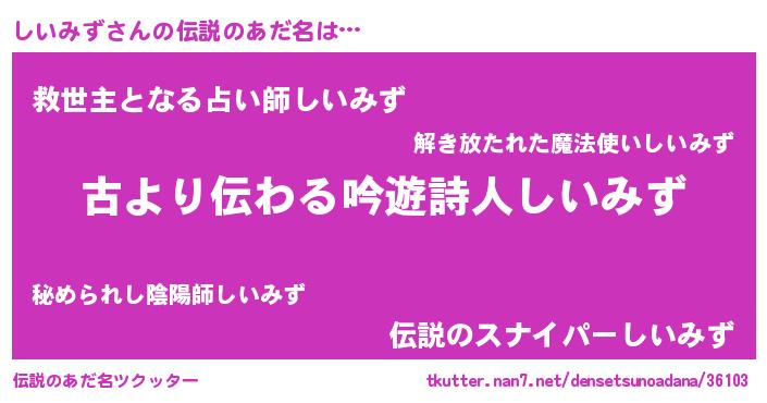 | ヒーロー風カッコイイあだ名 | 『ネオシイミズ』『慈愛の使者しいみず』 |