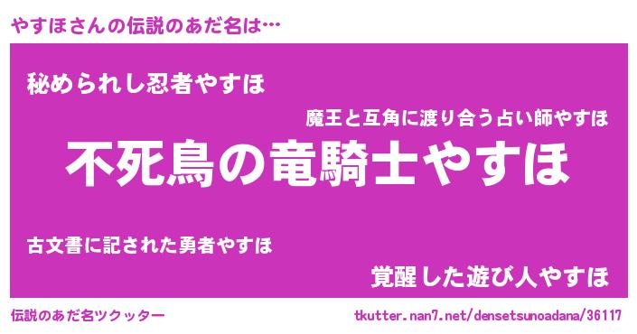 | 女子向けラノベタイトル風あだ名 | 『やすほ姫と円卓の騎士』 |