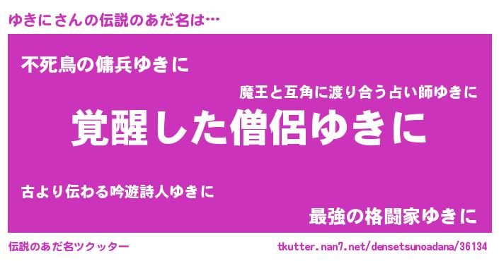 | 意味不明あだ名 | 『とにかく怪しいゆきに』『自称ゆきに』 |