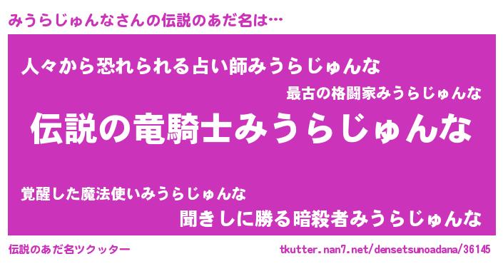 | 女子向けラノベタイトル風あだ名 | 『首の姫と首なしみうらじゅんな』 |