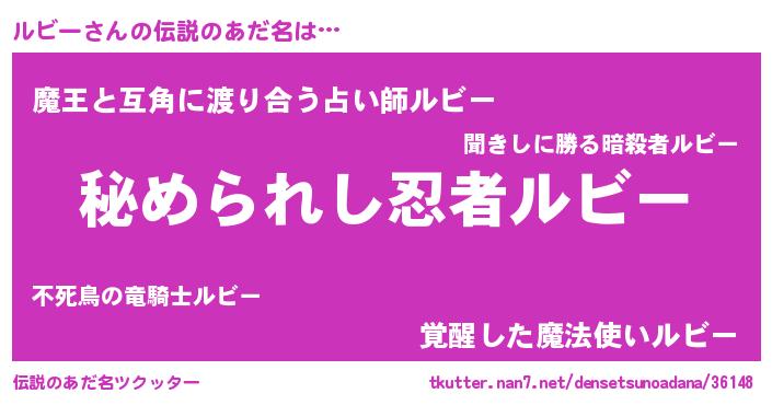 | 女子向けラノベタイトル風あだ名 | 『ルビーなんてお断りですっ。』 |