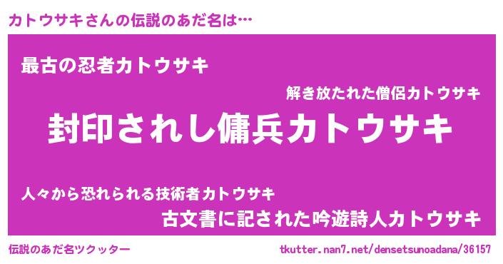 | ヒーロー風カッコイイあだ名 | 『スーパーカトウサキ』『ネオカトウサキ』 |