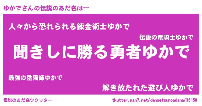 | 意味不明あだ名 | 『めかぶ科ゆかで属』『永久保存ゆかで』 |