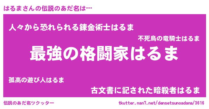 | 意味不明あだ名 | 『住所不定無職はるま(7歳)』『自称はるま』 |