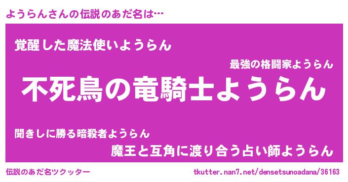 | 男性向けラノベタイトル風あだ名 | 『転生したらようらんだった件』 |