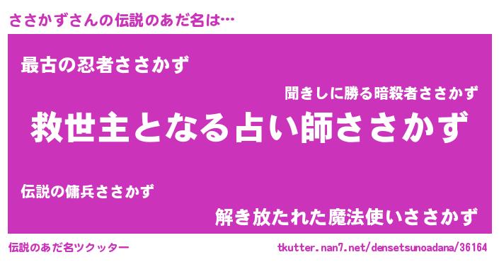 | ヒーロー風カッコイイあだ名 | 『天空の使者ささかず』『黄金騎士ササ』 |