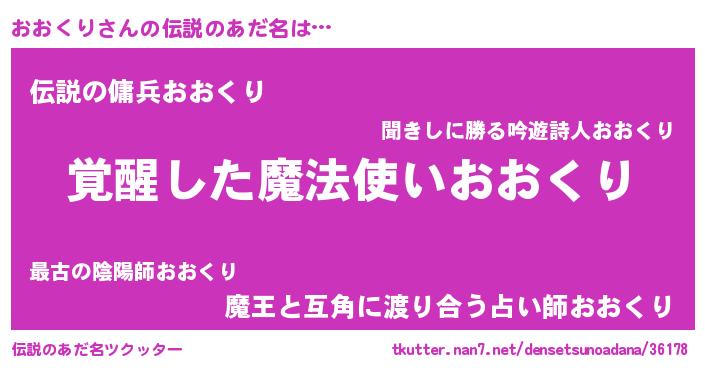 | 胡散臭い通販商品みたいなあだ名 | 『あなたにだけ特別に提供する100年もののヴィンテージワイン…その名も「おおくり」』 |