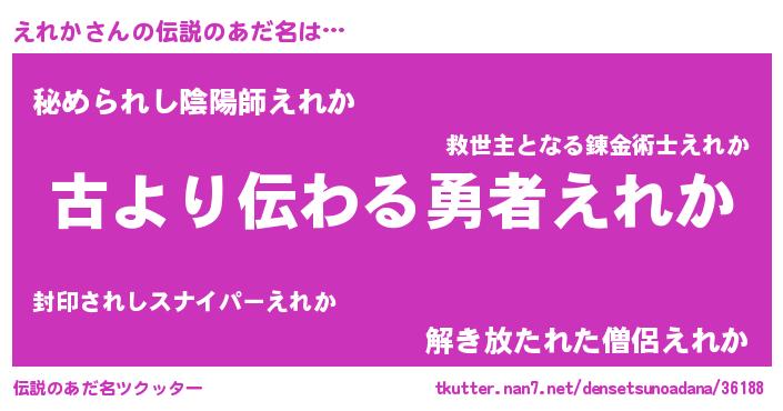 | ヒーロー風カッコイイあだ名 | 『ネオエレカ』『ウルトラえれかマン』 |