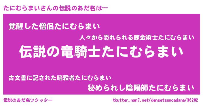 | ヒーロー風カッコイイあだ名 | 『スーパータニムラマイ』『暗黒騎士タニ』 |