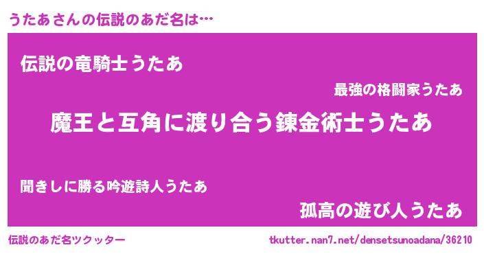 | 女子向けラノベタイトル風あだ名 | 『うたあ恋絵巻』『首の姫と首なしうたあ』 |