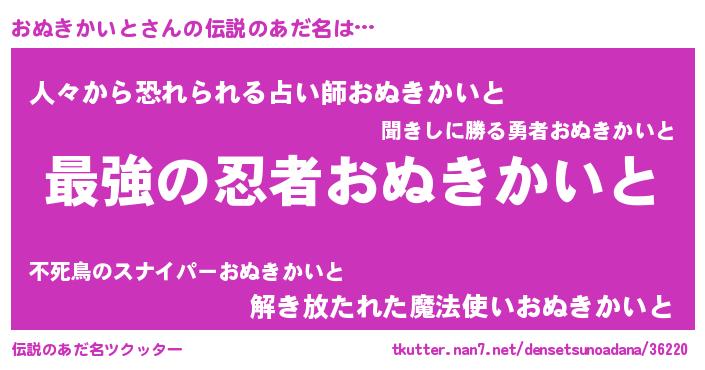 | 意味不明あだ名 | 『おぬきかいとフォーエバー』 |