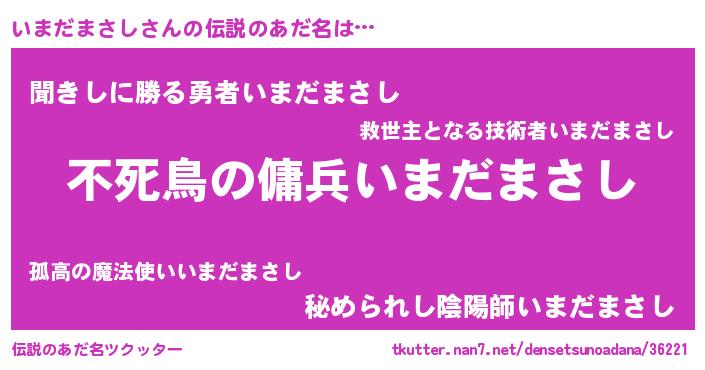 | 女子向けラノベタイトル風あだ名 | 『いまだまさし姫と円卓の騎士』 |